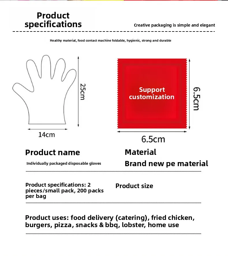 Two-Pack Disposable Food-Grade Gloves Thickened Catering Small Package for Takeaway Kitchen